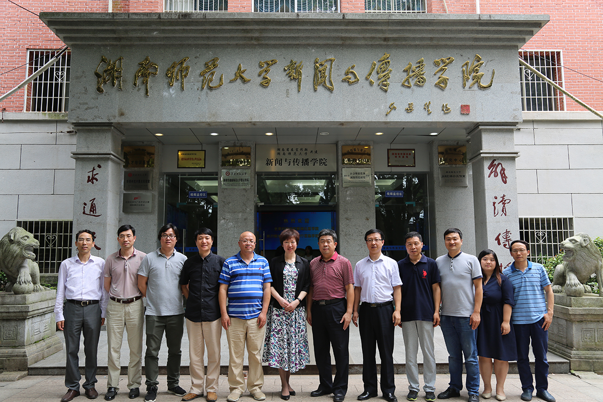 6月8日下午,北印新闻出版学院执行院长陈丹、副院长李德升、数字出版专业负责人王京山、国际传播专业负责人孙万军、广告专业负责人崔恒勇、新闻学专业负责人陈勤、综办主任谭锐一行到中南大学文学与新闻传播学院进行调研和交流。